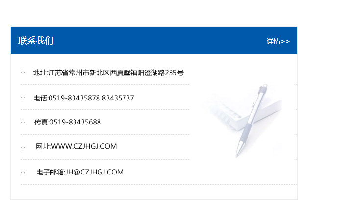 傳真:0519-83435688    郵編:213135    網址:WWW.czjhgj_com.gztlsw.com    電子郵箱:JH@czjhgj_com.gztlsw.com